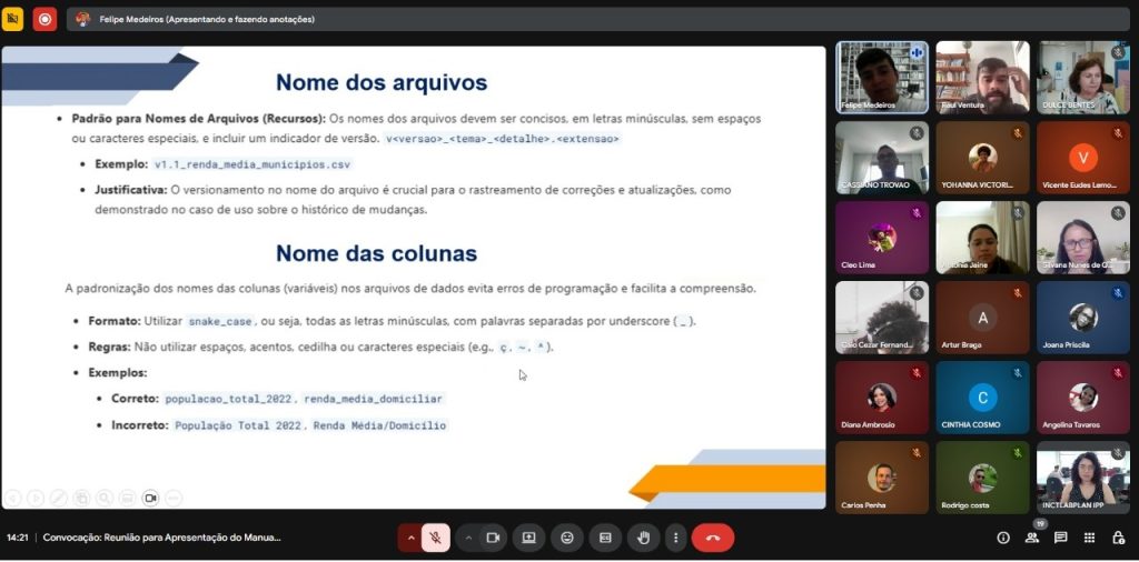 Sessão de formação com os pesquisadores para construção do banco de dados.
